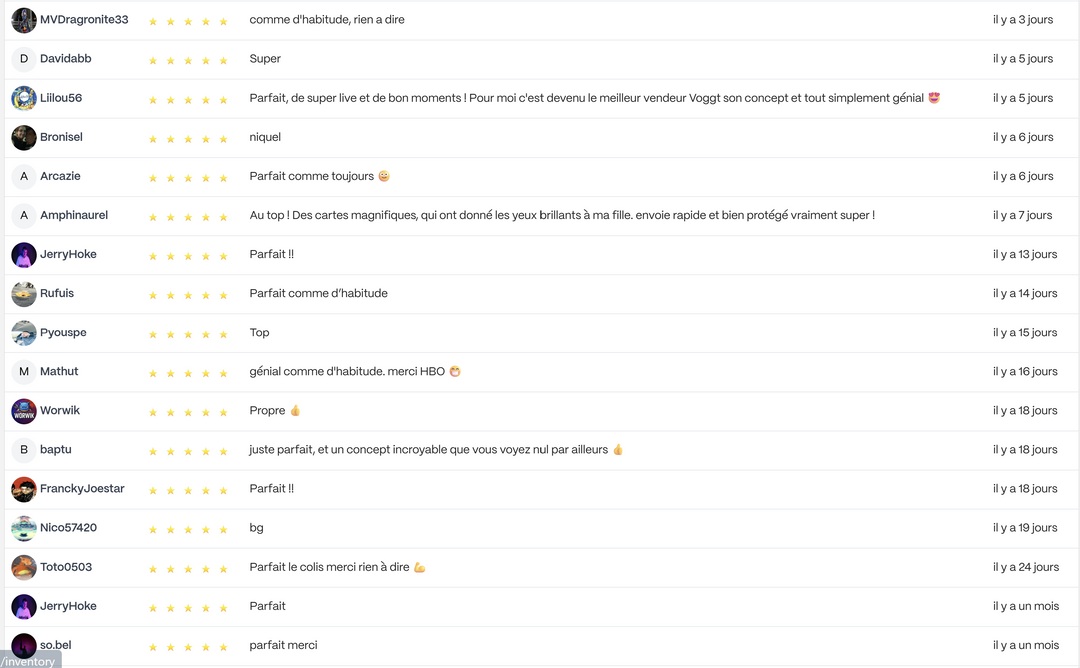 L'intégralité de mes avis (149 avec une moyenne de 4,97/5 ) reste accessible sur Voggt pour ceux qui souhaitent vérifier.